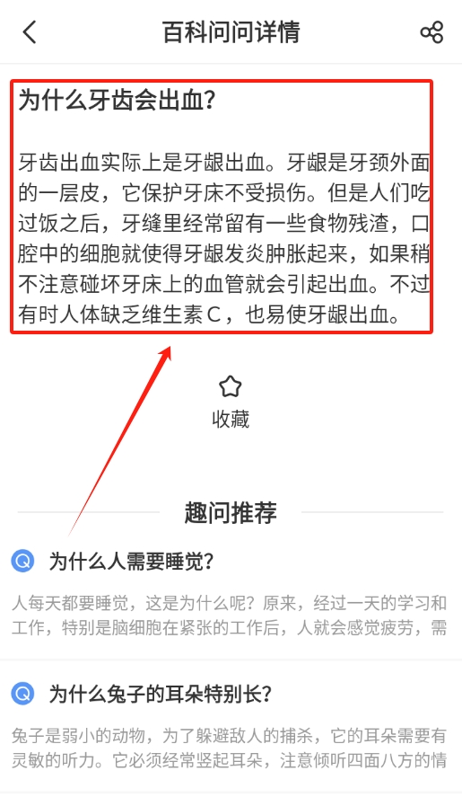 3、支持对感兴趣的内容进行收藏,看到有趣或有用的知识,轻点一下就能存起来,回头想再看的时候很方便。