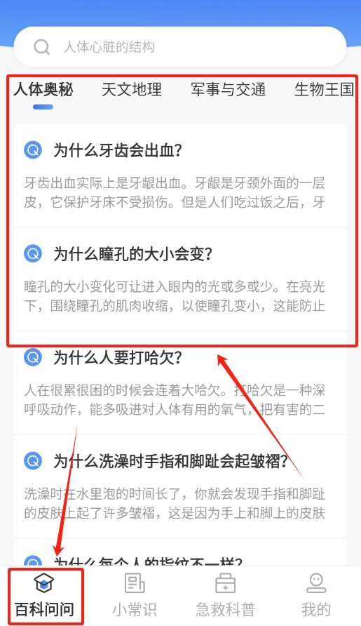 2、里面的知识类型特别多,有趣的百科内容、日常过日子的常识、紧急情况下的急救知识,还有各种实用工具相关的内容都能找到。