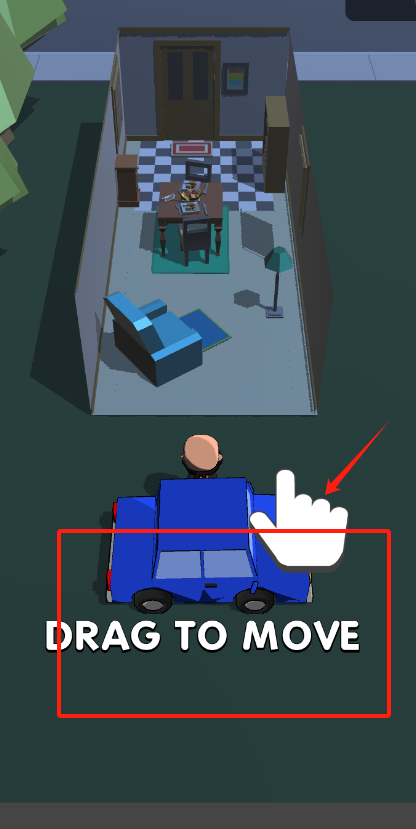 3、看到蓝帽子角色站在房间中央,用手指滑动屏幕控制他走动,碰到家具就能互动啦。