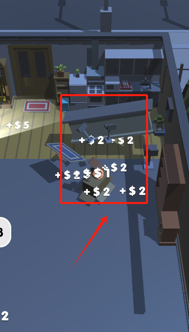 2、看到红框里的+$2等赚钱标识,点这些闪光区域就能收集金币,攒够钱解锁新物品哟。