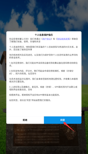 1、启动掌上兰西APP后,首次使用需阅读并同意用户协议和隐私政策,点击确认进入主界面。