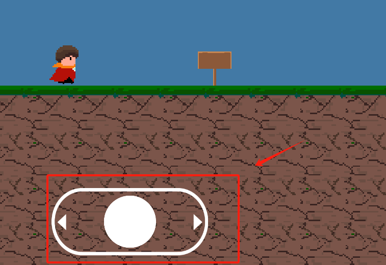 2、红衣服小人站在绿地上,棕色土地上红框白开关很显眼,箭头指着你快去踩它启动机关。