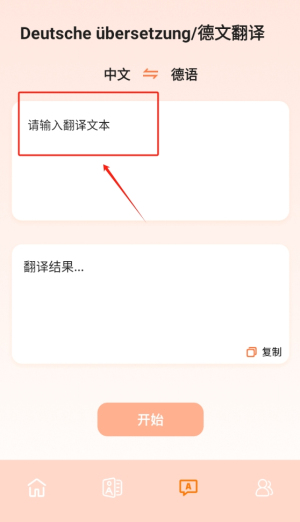 4、通过翻译框输入中文或德语句子,系统将自动识别语言类型并给出准确的双向互译结果。
