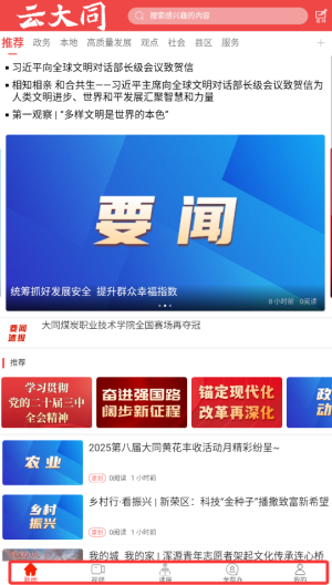 2、首页自动展示大同本地最新新闻动态和重要公告,实时更新资讯内容。