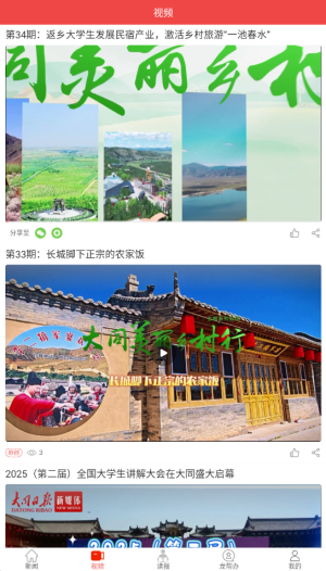 3、点击"视频"功能可观看本地新闻短片、专题报道等影像资料。