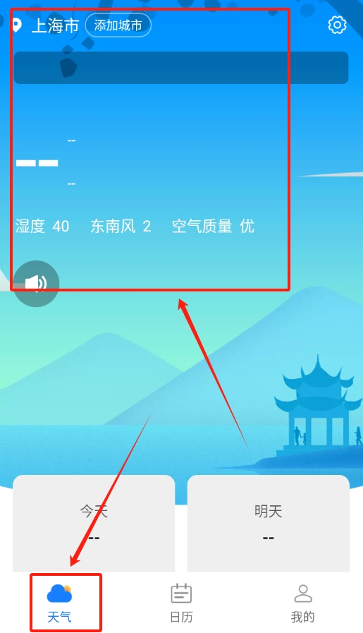 1、下载安装后打开,软件会自动定位所在城市,首页显示实时天气,上下滑动能看更多信息。