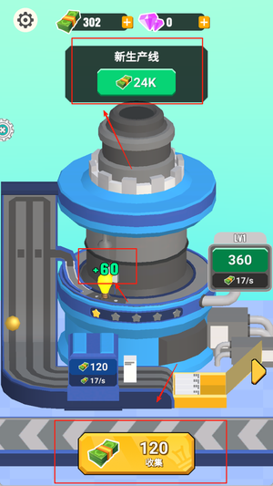 1、进入游戏后选择生产线进行建设,观察轮盘颜色分布与障碍位置,提前规划好行进路线确保顺利通关。