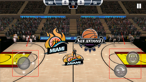 2、左侧控制角色移动与跑位,右侧用于传球、投篮和使用技能,在关键时刻释放大招提升得分机会赢得比赛胜利。