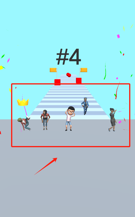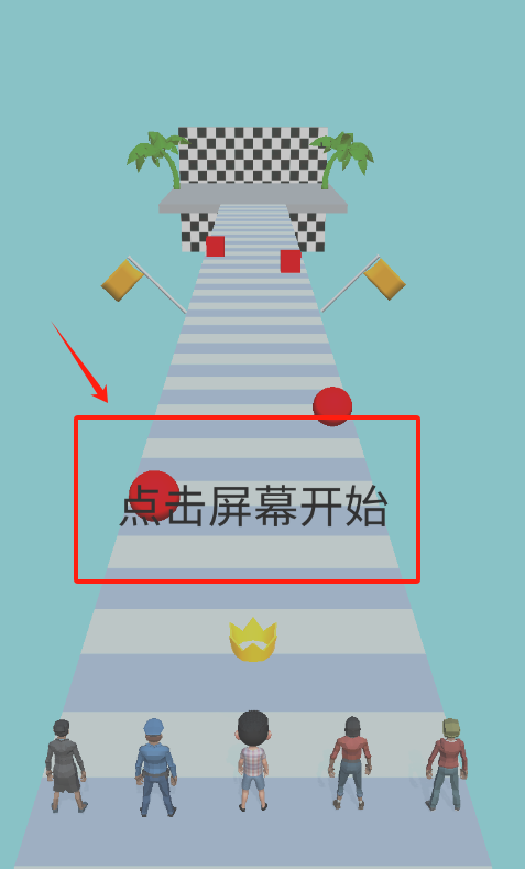 2、看红色箭头指的地方,点击屏幕开始这个红框,人物就会顺着阶梯往上跑啦。