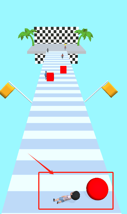 3、角色摔倒了别慌,点屏幕让他重新爬起来,躲开红色方块继续往前冲就对了。
