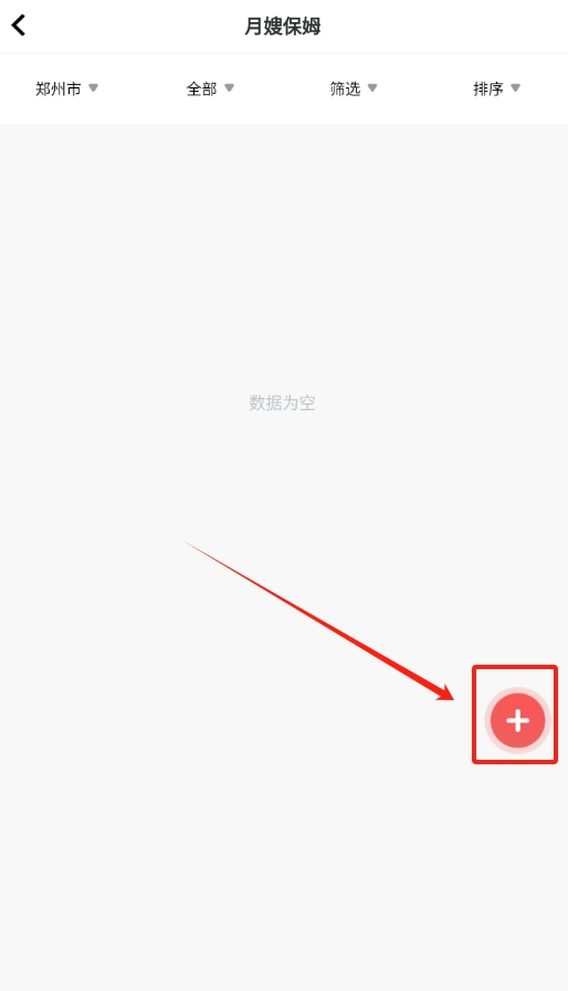 3、进入月嫂保姆页面后,在右下方有个加号按钮,点击这个加号,就可以开始发布自己的服务需求了。