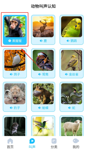 4、若想了解动物的叫声,可以直接选择相关功能,轻松播放不同动物的声音,增进对自然的认知。