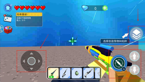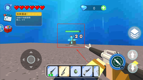 2、点击屏幕控制角色下潜与移动方向,滑动调整视角观察周围环境,发现敌人时迅速做出反应避开或反击。