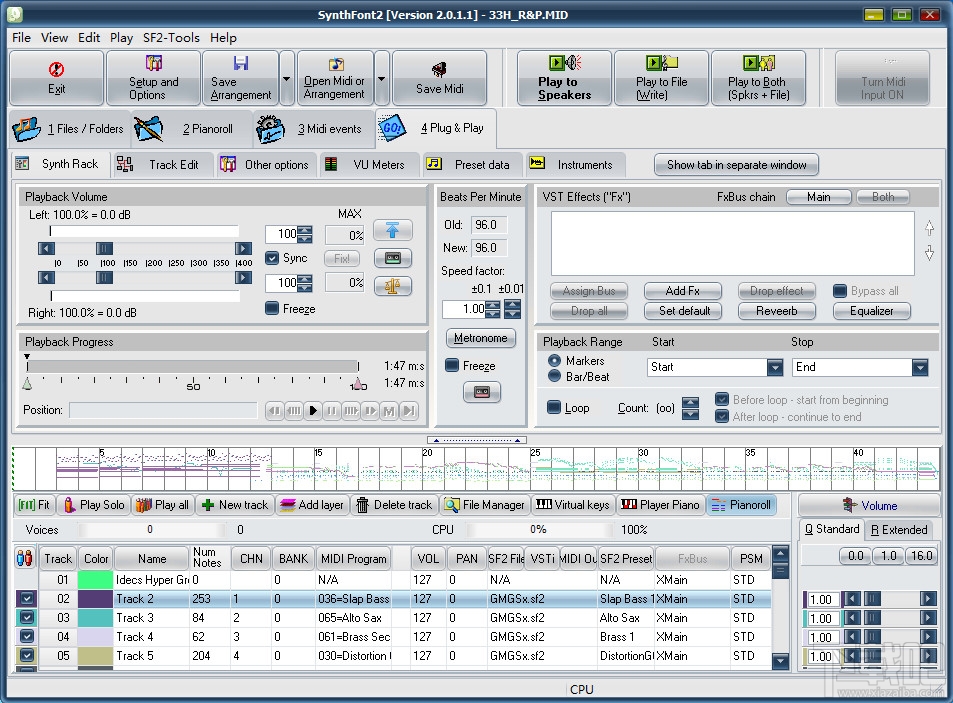 SynthFont是一款音乐合成软件,是非常好用的波表MIDI合成软件。你也可以用SynthFont创建音频文件(WAV,MP3,OGG,)SynthFont还可以很容易指定不同的乐器来区别SoundFonts或VST MIDI通道,也有MIDI编辑功能。
