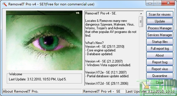 RemoveIT Pro是一个免费病毒、蠕虫、广告、间谍程序清除工具。包含进程管理、系统服务管理和系统启动项管理等功能。