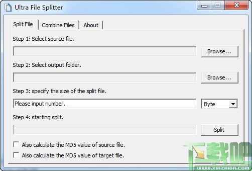 Ultra File Splitter是一个真正的大文件切割工具。该软件用于将一个大文件切分成若干份小文件,以便移动,存储,通过邮件发送等等。