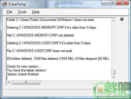 EraseTemp是一款从你的计算机删除旧的临时文件的实用工具。EraseTemp与大多数其它的默认删除所有临时文件的工具不同,该软件仅仅删除至少一天以上的临时文件(避免文件或者需要使用的问题)。如果你恰好运行应用软件,该软件就会删除超过一天以上的临时文件。该软件监视你的文档和设置当中的私人临时文件夹,临时文件夹位于 Windows 操作系统文件夹当中。你还可以使用 EraseTemp 删除位于任何文件夹当中的任何天数以上的旧文件。该软件还可以接受命令行参数并且可以清除空的子目录。EraseTemp 在启动时可以立即删除文件,推荐想要利用命令行选项的高级用户使用。