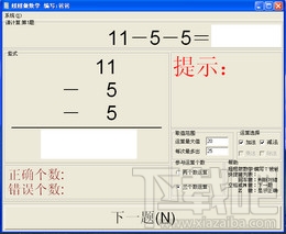 妞妞做数学是一款让小学生做数学的小工具,闲来没事给俺家千金编着玩的,可随机生成指定数范围内的二则或三则运算。快捷键列表:回车键:判断对错 空格或N键:下一题Z键:显示正确答案(是CTRL+Z键)。