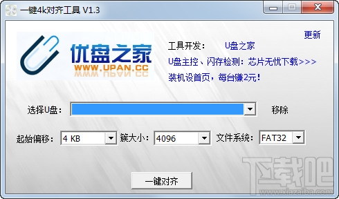 一键4K对齐工具针对U盘设备一键扇区对齐,一键完成简单好用;支持清除目前市面上制作的HDD/ZIP UD分区;在误操作将U盘快速分区后,U盘不能使用,可用此工具还原默认1个分区;