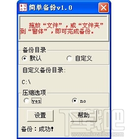 简单备份(easybak)用于文件或文件夹的备份,拖放文件或文件夹到窗体,即可完成备份。说明:文件,默认备份目录名为:“文件名+bak”,备份格式名为:“文件名+时间”。文件夹,默认备份目录名为:“文件夹+bak”,备份格式名为:“文件夹+时间”。