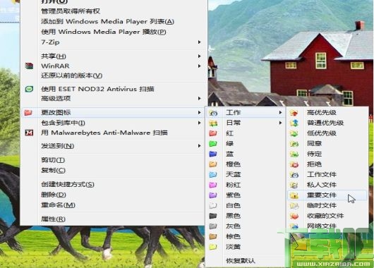 FolderIco可以轻松更改文件夹图标的颜色,默认有红绿蓝等12种颜色,同时,可以根据您的需要,设置文件夹为工作类或者日常应用类,可以给文件夹按照重要性添加等级星标。