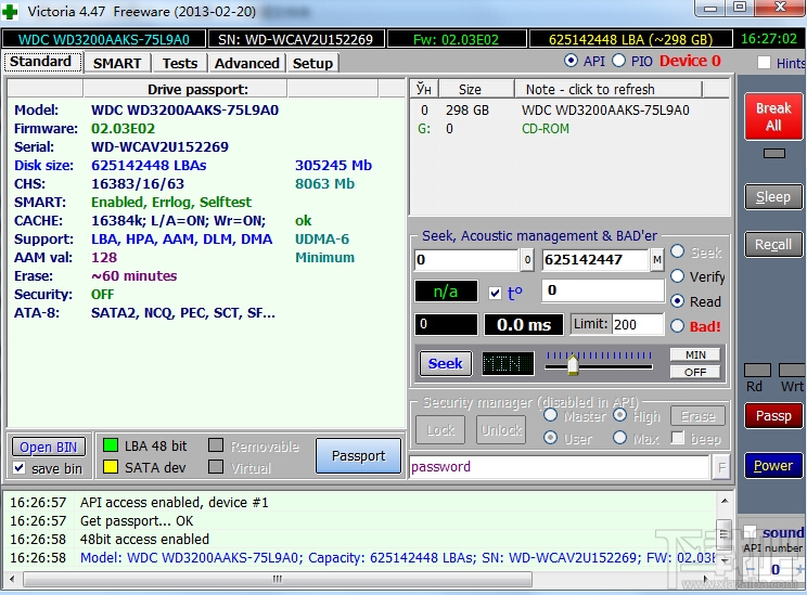 Victoria硬盘坏道检测工具是Windows环境下强大的硬盘维护工具。Victoria具备硬盘表面检测/硬盘坏道修复/smart信息察看保存/cache缓存控制等多功能的工具,支持众多型号硬盘解密;支持全系列检测和修复。