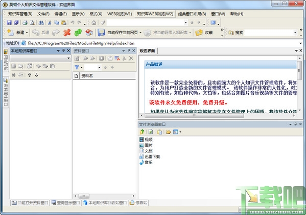莫顿个人知识文件管理软件是一款完全免费的,且功能强大的个人知识文件管理软件,将知识管理理念和文件管理相结合,为用户打造全新的文件管理模式。 该软件操作非常的人性化,对文件或者文件夹集群化管理特别有效,如各种代码,文档等,也适合如图片音乐视频等文件的管理。