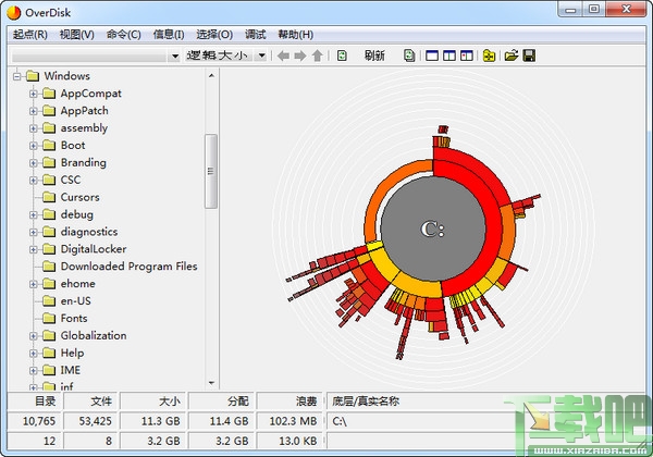 OverDisk一个新兴的优秀的磁盘空间分析的软件,它可以以五彩缤纷的颜色来显示磁盘里的文件大小,物理大小,浪费的空间。你也也不必看着冷冰冰的文件夹来找那个文件比较大,最浪费空间,OverDisk可以形象的找出。