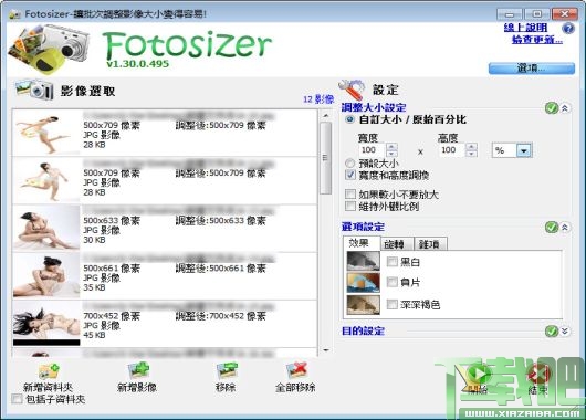 Fotosizer是提供了批次转换格式、缩放图片保持比例、旋转图片、黑白和负片效果、更改档名的功能,介面相当简洁大方,非常直觉的操作介面,并且提供繁体中文与多国语言。