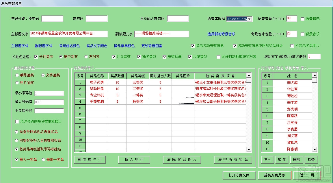 8.软件可使用中文语音发布奖品信息和获奖信息;