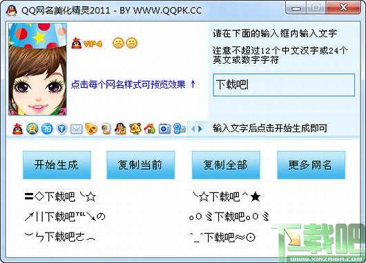 QQ网名美化精灵可以让追求个性的QQ用户们自动生成美化后的QQ网名(QQ昵称),软件默认提供六种美化结果可供选择。