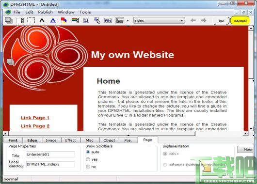 DFM2HTML可以制作网页。像阴影,旋转或者圆角这样的效果可以被应用。该软件拥有一个用于你的站点的即时发布的内置的 FTP 上传管理器。一个预设置对话框提供了一个范围广泛的鼠标感应按钮和导航栏。你可以在一个 DFM2HTML文档中管理多个网页,它们甚至可以被嵌套在一起。可以设置 HTML 表格和 IFrames。风格表允许你为你的站点提供一个交互式外观。高级的定位系统可以自动地定位网络元素,缩减设计者的工作量。