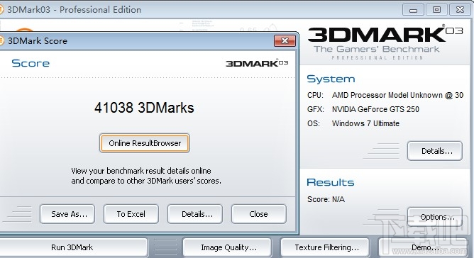 3Dmark是futuremark公司的一款专为测量显卡性能的软件,3DMark03提供了对PixelShaders2.0和Vertex Shader2.0的支持(由于PixelShaders2.0和Vertex Shader2.0就是微软DirectX9.0所提供的,所以要完整运行3DMark03必须安装DirectX9.0)。3DMark03受处理器、内存和主板的影响远远要低于3DMark2001,更专注于显示卡着色能力的测试。3DMark03内置了独立的CPU测试项目,可进行深度的处理器测试。