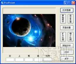 PicPrint是一个图片打印程序,需安装.net2.0以上平台支持。PicPrint图片打印软件可以任意设置图片的长宽、位置。可设置图片的“原始居中”和“适合页面”,另外新加入了“扩大比例”和“缩小比例”以打印出最合适的图片大小(目前仅限A4纸)。ESC键清除左、上、宽、高数值,如需打印A3等纸张,需要在“页面设置”的“大小设置”里选择A3,并在软件下方手动设置纸张位置与大小。