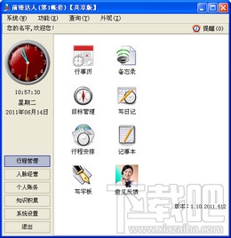 一套适用于商业精英、老板、中高层主管、职场白领, 在个人时间管理、行程安排、记事提醒、人脉经营、账务管理、知识管理等方面提供强有力的帮助, 使之在竞争激烈的现代职场、商业环境中出类拔萃,所向披靡的秘密武器! 主要功能 1.行程时间管理: 行事历、 备忘录、 目标管理、 日记本、 行程安排、 记事本、 灵光一闪、 提醒精灵、 发送邮件提醒 2.人脉经营:人脉库、 名片库、 拜访记录 、生日提醒 3.账务往来:收入账务、 支出账务、 账户管理、 转账管理、 收入统计、 支出统计 4.知识积累:知识库、 知识分类管理 5.系统功能:我的资料、 系统设定、 自定义资料、 设定登陆密码、 密码箱、 注册正式版、 意见反馈。
