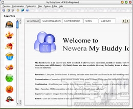 My Buddy Icons 有下列功能:1) 自订、修改、创建专属于您的小图标;2) 直接将小图标套用到 AIM;3) 内建超过 160 种原创小图标;4) 可以改变图标属性,作更广泛的应用;5) 超过 100 个图标下载网站连结;6) 抓起桌面方形区域的图标。