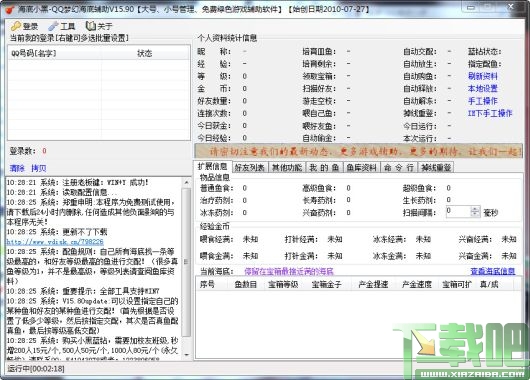 3.83 MB/2020-08-17QQ海底小黑(QQ梦幻海底辅助器)功能:1.自动收取好友的金币.2.可设置帮好友喂鱼.3.可设置放逐鱼获得金币.4.可设置给鱼使用冰冻或兴奋药剂.5.可设置自動配種获得经验奖励.6.支持提高养鱼数量.7.可以扩充宝箱的容量.