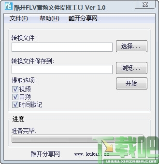 酷开FLV视频音频文件提取工具是由酷开分享网开发,可以提取里面的视频、音频、和时间戳等数据信息,支持提取 MP3格式的声音流文件以及h263(FLV1)格式或On2 VP6和带有Alpha通道的(FLV4)。视频提取代码为AVI格式输出的类文件。
