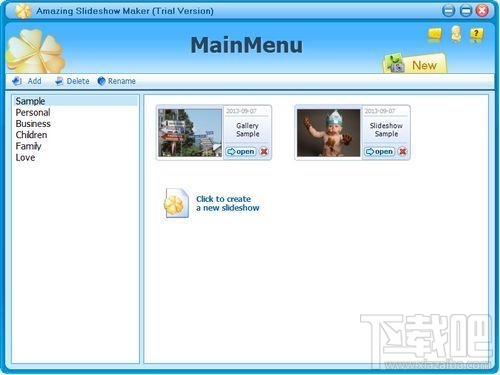 Amazing Slideshow Maker 工具可以用来使用图像,视频,创建幻灯片,电子贺卡,问候,并介绍和音乐。你可以添加很酷的动画和装饰性的文字。一旦创建后,您可以将幻灯片导出为SWF或直接在Facebook和其他流行的视频分享网站发布。