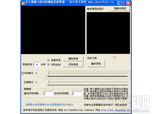 然而,由于背景图像的动态变化,如天气、光照、影子及混乱干扰等的影响,使得运动检测成为一项相当困难的工作。 该系统优点与缺点比较: 优点:如果忽略电脑的本钱,性价比极高,同时无需专业知识,廉价,容易上手。 缺点:与专业的红外报警器相比,误报率较高。只能按照画面改变采取报警。而红外报警器采用热释电元件,这种元件在接收到人体红外辐射温度发生变化时就会失去电荷平衡,向外释放电荷,后续电路经检测处理后就能产生报警信号。 普通个人电脑的选用:只需一般电脑即可,如需装高清USB摄像头(物理动态130万的摄像头)电脑需支持USB2.0,如电脑主板不支持的USB2.0那只需安装USB2.0扩展卡就可以了。 普通的USB摄像头的选用: 普通USB摄像头就可。选择清晰度高的这样监控效果更好。