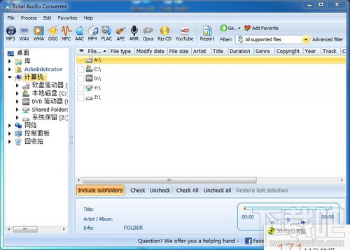 可简单地将任何音频文件转换成其他的大小和格式而不需要生成临时的Wav文件。而且CoolUtils Total Audio Converter可转换CD音轨,修改波特率和频率。支持各种流行的音频格式。