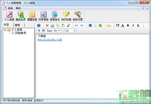 《个人信息系统》整合了“名片”、“记事”、“信息”、“日程”、“加密”管理等众多功能于一体。