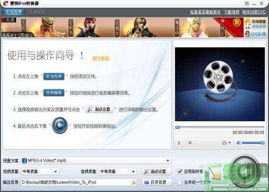 1、将几乎全部格式音视频转换为苹果ipod机支持的视频格式;电脑里的电影视频能随意在苹果ipod机上观看。