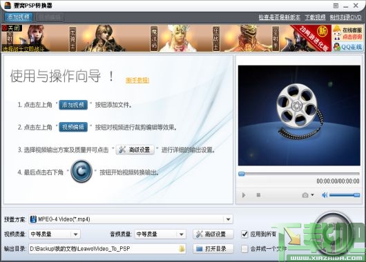 狸窝超级psp视频转换器功能强大、界面友好;是一款全免费PSP视频转换及编辑工具。狸窝psp视频转换器支持将所有流行的视频格式。如:RM、RMVB、VOB、DAT、VCD、 DVD、SVCD、ASF、MOV、QT、MPEG、FLV、MKV、WMV、MP4、3GP、DivX、XviD、AVI等视频文件,编辑转换为索尼PSP机上支持的视频格式。