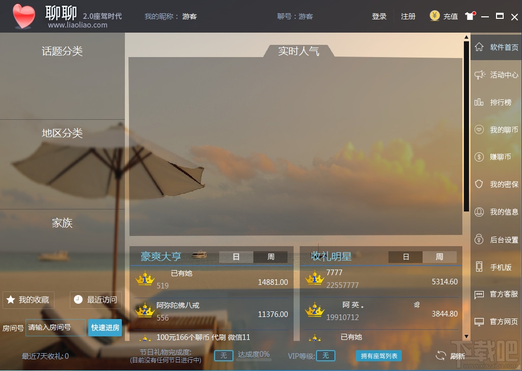 19.63 MB/2020-08-17好聊聊天室是中国最早的语音聊天室之一,可以说是视频聊天的鼻祖了,那么这么长的历史可谓是积淀下来非常好的网站好评率,让很多聊友流连忘返,好聊聊天室客户端采用国际上的H.264视频压缩技术,能同时实现100人同时视频聊天。好聊聊天室经过多次的改版和改进,有很多新的功能等待你的加入。同其他的聊天室类似的是他也可以申请私聊用的小房间,并且有会员设置,会员拥有很多特权,像尊贵的标示,让你成为聊天房间里面