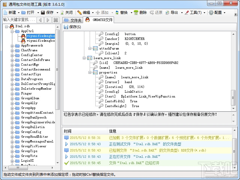 支持QQ2009(SP3及更新)、TM2008 Beta1.3以后版本的包文件(*.rdb)的解包和重新创建;