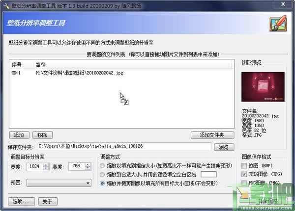 壁纸分辨率调整工具用于批量调整图片到指定的分辨率,并通过裁减的方式保证图片保持原有的形状而不变形。