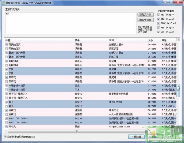 重复音乐查找工具是为了解决下面情况开发的。对于很多的音乐狂热分子来说,看到音乐就犹如饿狼看到小羊羔般两眼放光,经常是忘乎所以地鼠标猛击歌曲猛下。