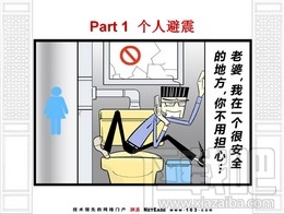 图文结合的漫画防震安全手册,简明易懂。中国灾害防御协会网站的文章指出,在震中及其附近地区,从地震发生到房屋倒塌,一般有12秒钟左右的时间,作为个人,应当保持冷静,并在12秒内作出正确躲藏的抉择。而懂得科学有效的防范和自救方法,能将地震给我们带来的生命和财产威胁降到低到。