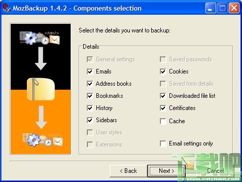 MozBackup是一款能够帮使用者备份与还原Mozilla Firefox,Mozilla Thunderbird,Mozilla Sunbird,SeaMonkey,Flock,Mozilla Suite,Spicebird and Netscape等设定与数据的免费工具,让使用者不必再为了数据转移时的备份工作感到烦恼。例如对Firefox而言,您可以将一台机器上的扩展和设置通过MozBackup移动到数台机器上,这对于用于经常在浏览器中完成工作的人来说,可以明显减少构建工作环境的麻烦。